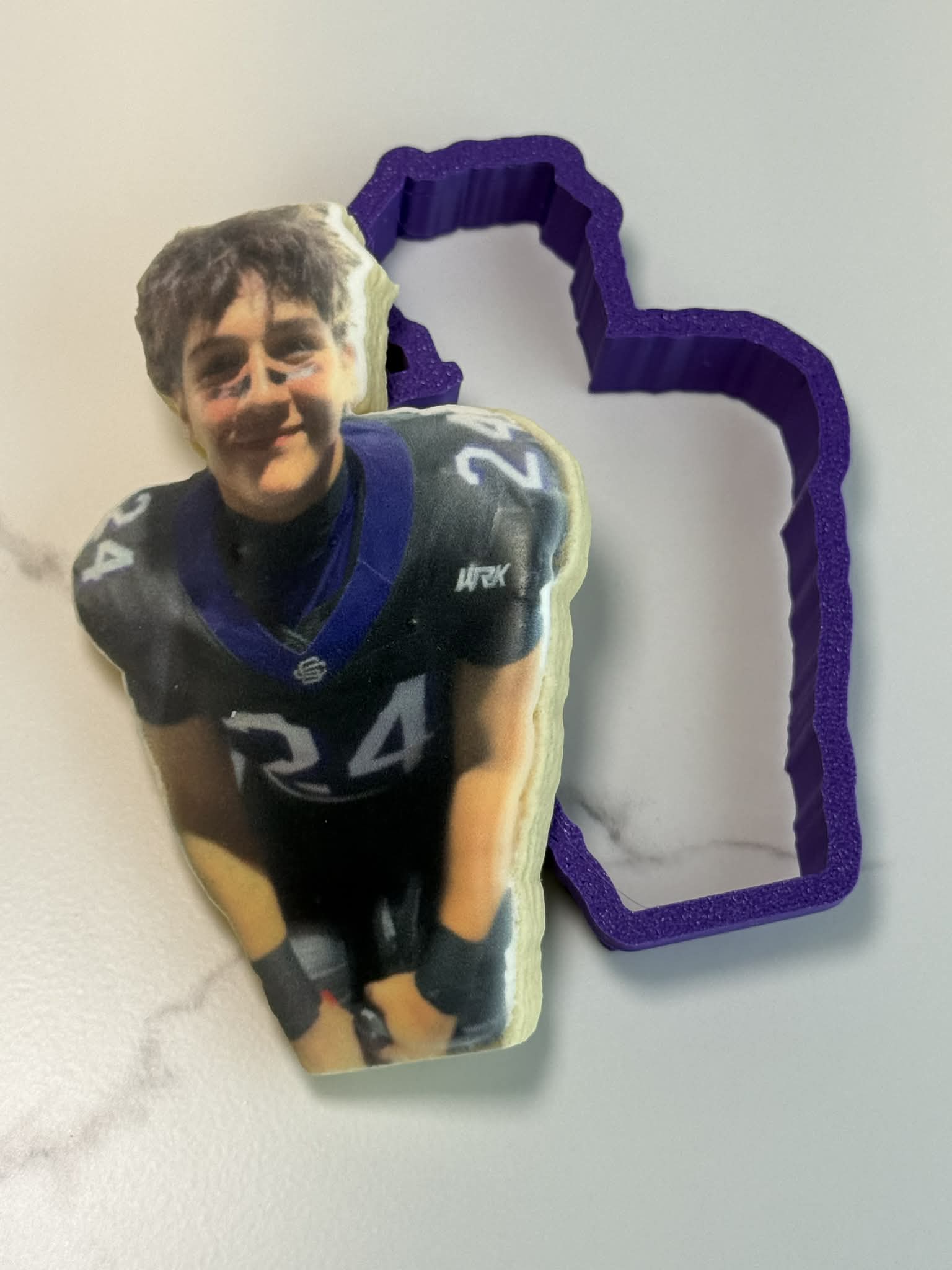 Each image requires its own custom cutter and design process. Multi-image sets reflect additional fabrication and design time. Final cookie size averages 3.75-4 inches, adjusted for shape stability and image clarity. One revision round per image is included.