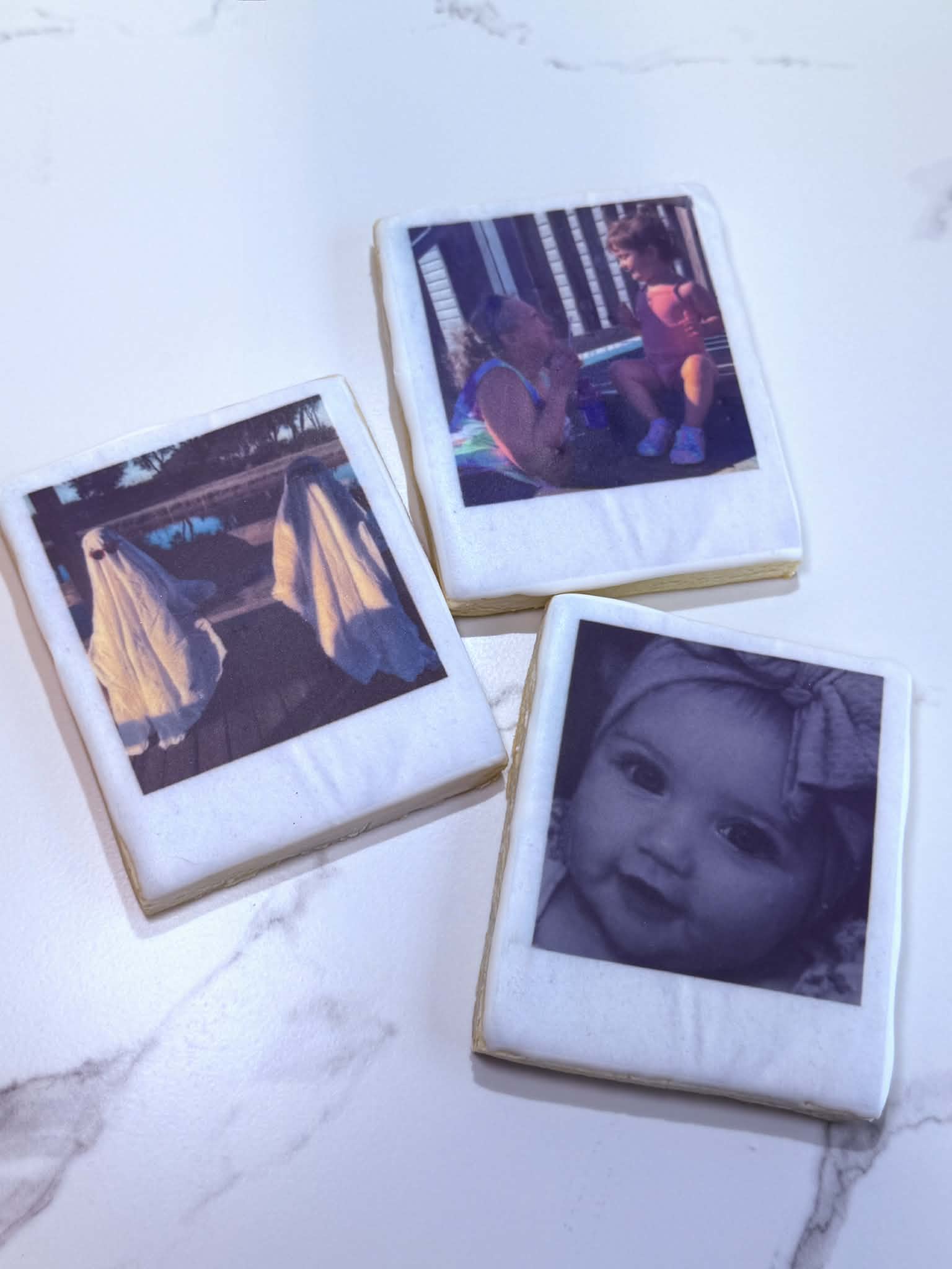 The Snapshot Collection transforms your most meaningful images into an elevated, edible keepsake designed for display, gifting, and remembrance. Each cookie features your photo printed within a framed layout creating a cohesive collection that feels intentional, polished and timeless.